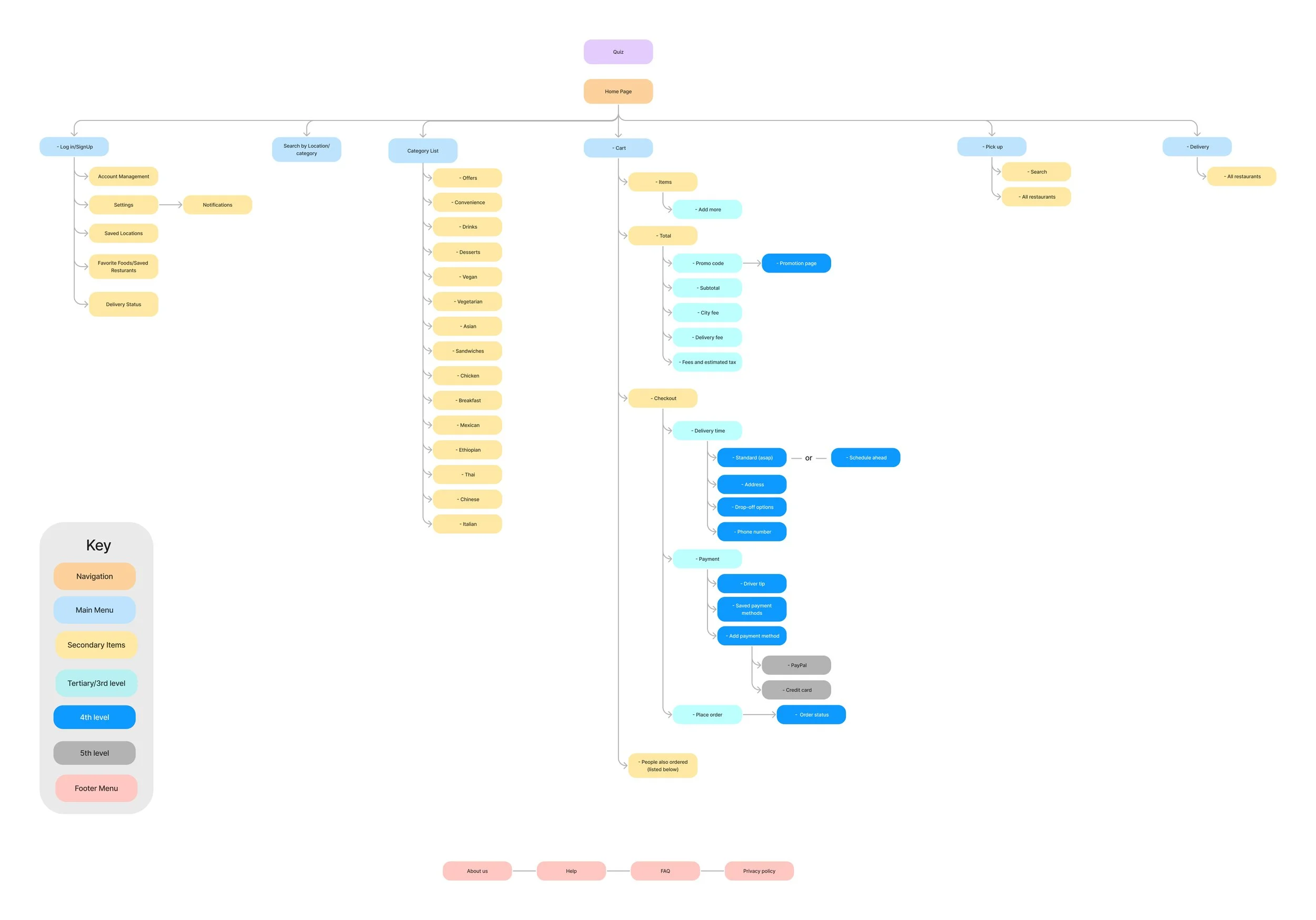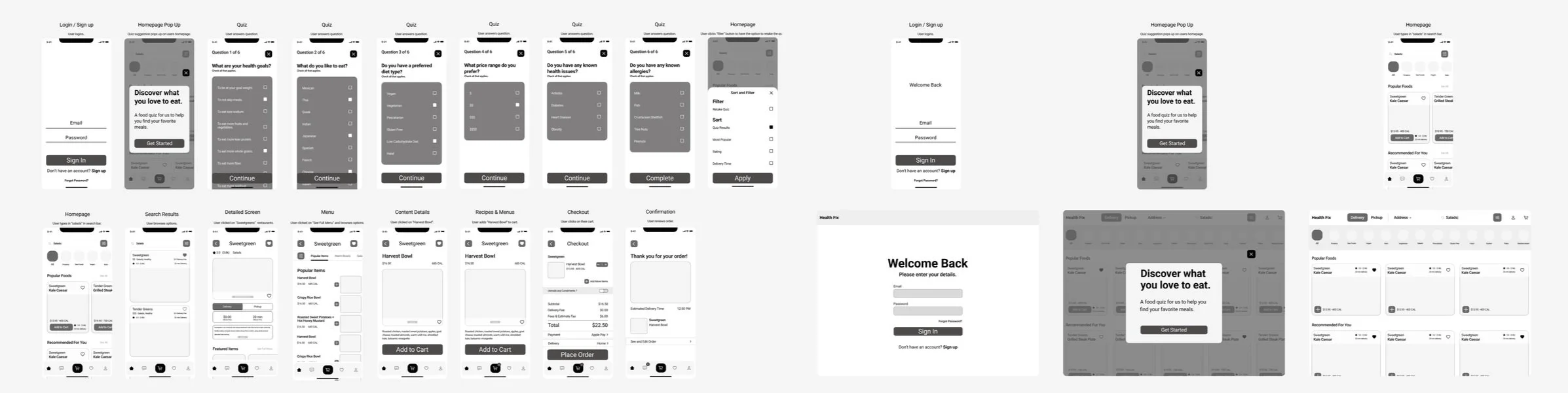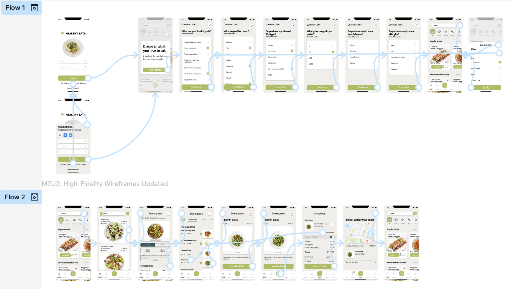 Using figma, I created a sitemap for Healthy Eats. Starting with the navigation menu and working my way to each screen.