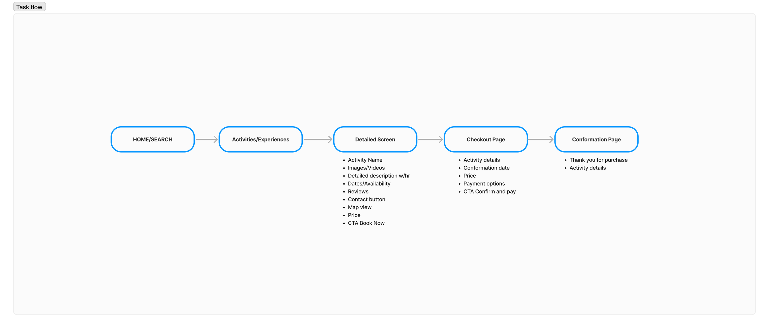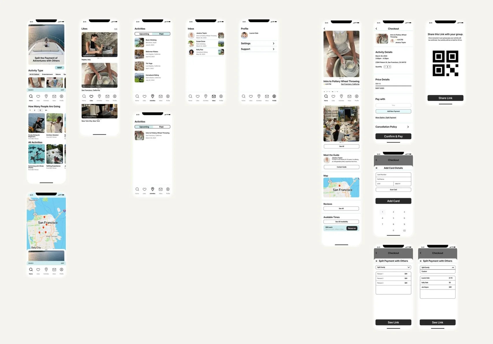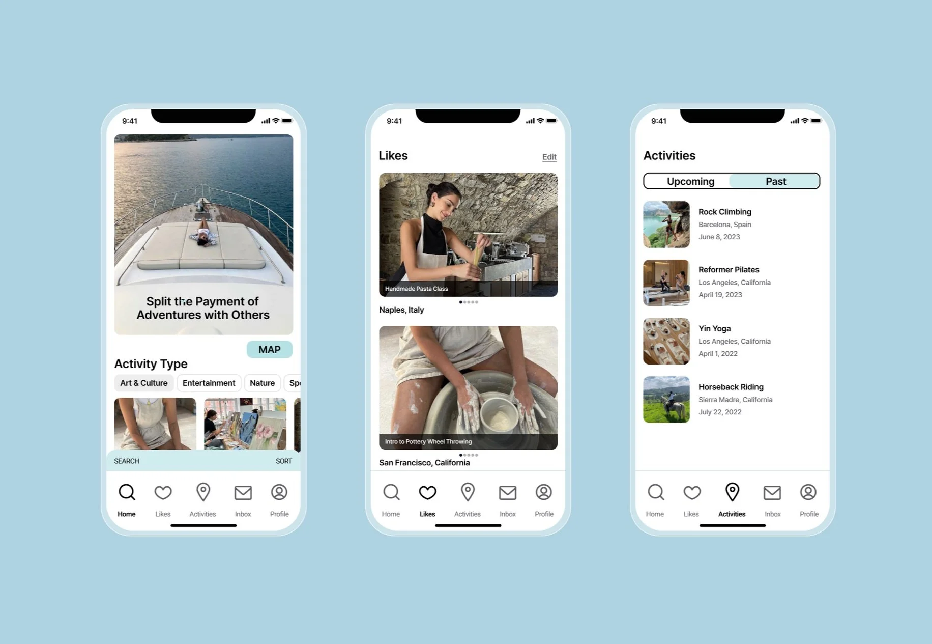 I first did a competitor feature analysis research to get a better understanding of the topic. Then I continued my research by conducting interviews. Some questions I asked were, “What do you like to do for fun? What are your hobbies? Is it usually with friends or by yourself?”, “If there’s one thing you could change that would make booking experiences online easier, what would it be?”
